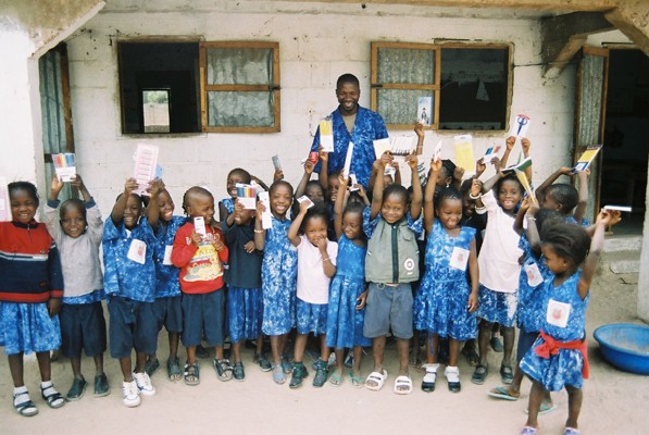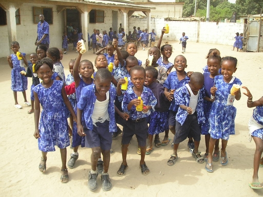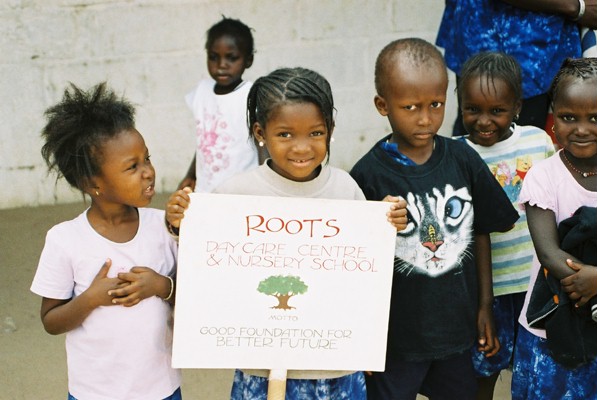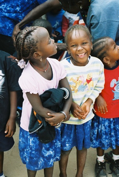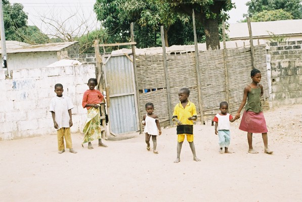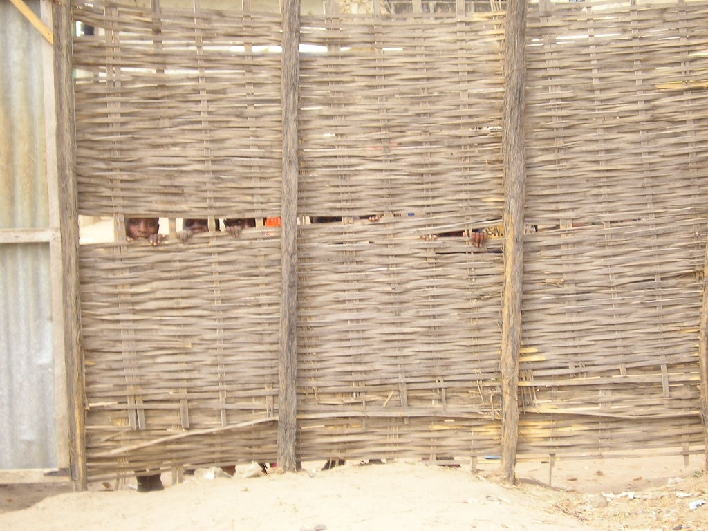 Some of the less lucky children who are not able to attend school, nervously come through the gate